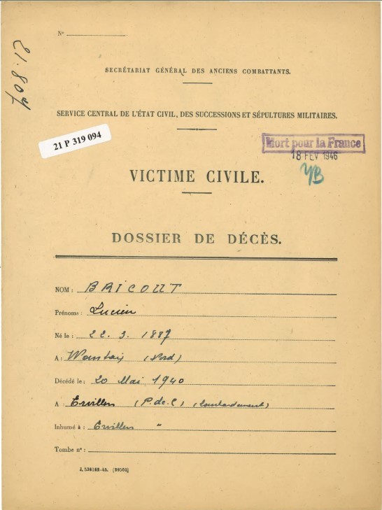 Ces témoignages sont issus du dossier de victime civile de Lucien Bricout. En 1945, son beau-frère qui s’occupait de ses trois enfants mineurs, avait sollicité la reconnaissance de son décès comme « Mort pour la France ». Ensuite il a entrepris les procédures pour que ces neveux soient reconnus pupilles de la Nation.