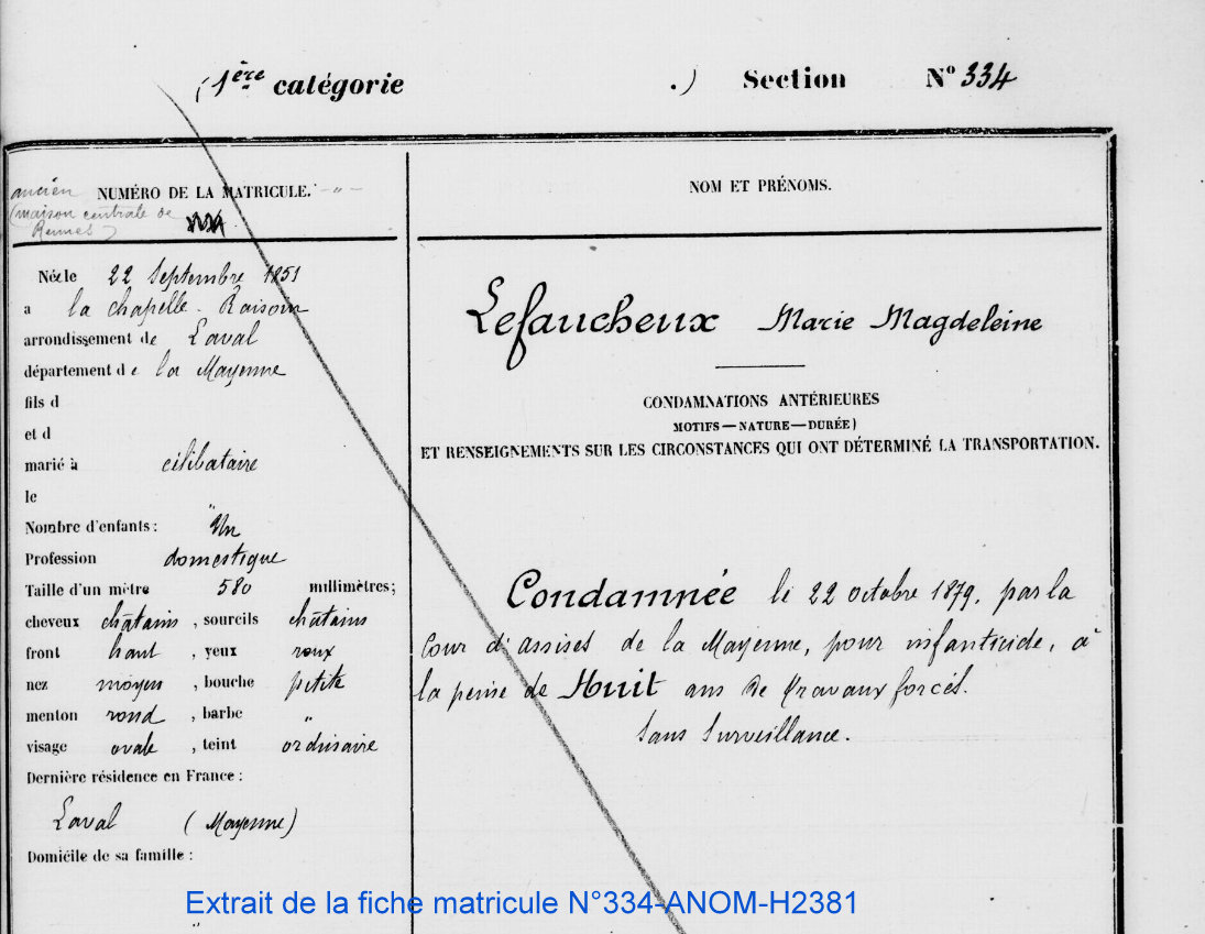 Marie est née en septembre 1851 à La Chapelle-Rainsouin : c’est la deuxième enfant d’un couple de cultivateur Mathieu Lefaucheux et Madeleine Legrand. Après s’être installée à Montsûrs, la famille s’agrandit de cinq autres enfants. Marie n’a pas vingt ans lorsque sa mère décède. Aidé par ses aînés, le père continue d’exploiter la ferme. Le 3LireLire la suite « Marie, bagnarde mayennaise en Guyane »