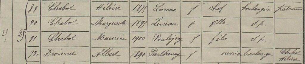 Héloïse épouse Jean à Paris le vingt-sept décembre 1898. La mariée exerce la profession de cuisinière dans le XVIIe arrondissement, Jean est boulanger à Pouligny-Saint-Pierre dans l’Indre. Il reconnaît être le père de la fille d’Héloïse, Marguerite, âgée de trois ans et demi. Début 1899, le couple acquiert un terrain d’environ cinq ares au lieu-dit « Bénavent », le long de la route du Blanc à Tournon. C’est là que la boulangerie est construite sans faire appel à un architecte ni à un quelconque entrepreneur. La maison d’habitation est composée de quatre pièces au rez-de-chaussée, deux pièces au premier étage et un grenier au-dessus avec une mansarde. À l’arrière sur le terrain, un hangar, une écurie et d’autres bâtiments délimitent la propriété, agrémentée d’une cour et d’un jardin. Le fournil est accolé à l’arrière de la maison. La même année naît un premier enfant, un garçon que l’on prénomme, Maurice. Jean boulange, aidé de son ouvrier et Héloïse vend le pain tout en veillant sur ses enfants.