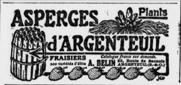 Il n’est donc pas surprenant que le conseil municipal émette un avis très favorable et unanime à l’initiative de cette société, qui permettra de promouvoir l’asperge locale, sans frais pour le contribuable ! L’histoire ne précise pas si, au menu ce soir-là, quelques asperges tardives d’Argenteuil avaient été servies.