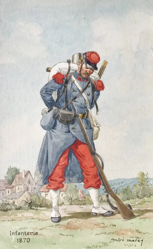 Aquarelle d’André Marcy : Infanterie 1870. https://armeehistoire.fr/